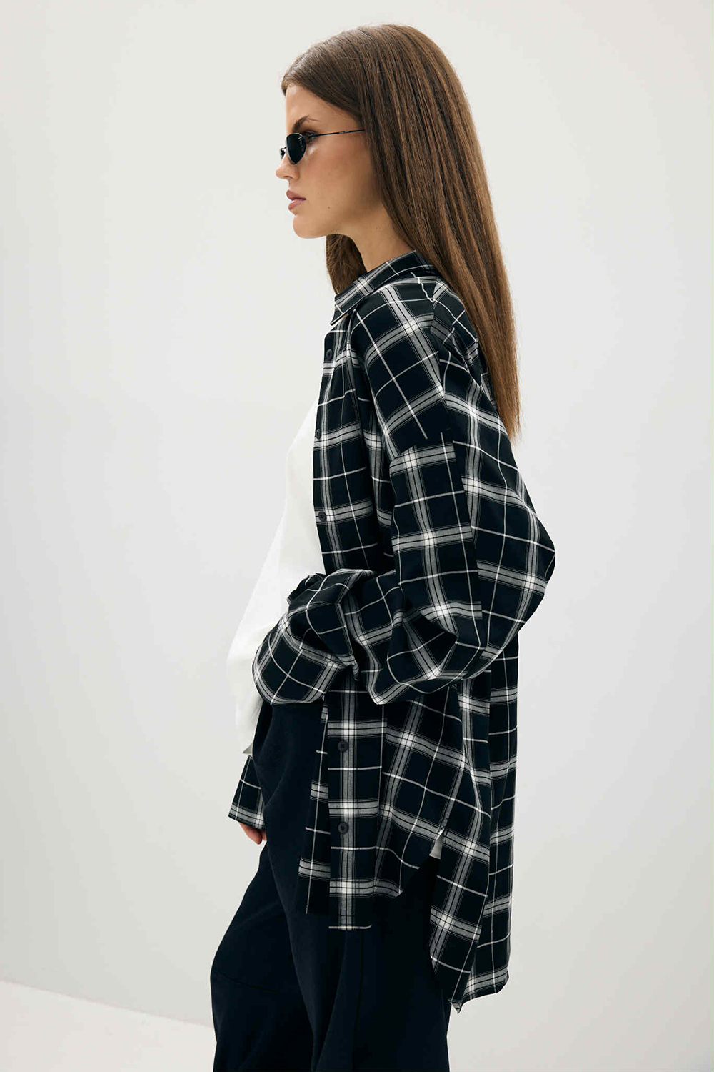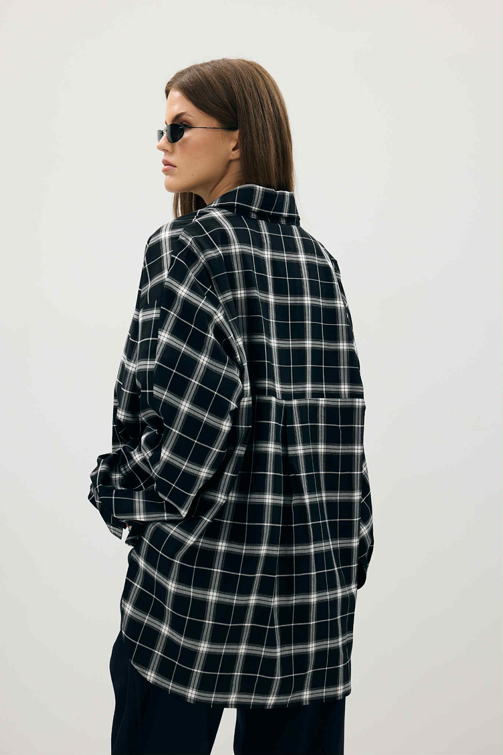 Koszula „Midnight Check” to połączenie minimalizmu i mocy współczesnego stylu. Uszyta z ekskluzywnej tkaniny pochodzącej ze stocku domu mody Balenciaga, zachwyca jakością wykonania i ponadczasowym printem w czarno-białą kratę. Jej oversize’owy krój dodaje nonszalancji, a miękka, gęsto tkana bawełna gwarantuje komfort noszenia przez cały dzień. Idealna dla kobiet ceniących nowoczesną elegancję z nutą streetowego charakteru. Świetnie wygląda zarówno w stylizacji z jeansami i trampkami, jak i w zestawie z kozakami na obcasie czy oversize’ową marynarką.