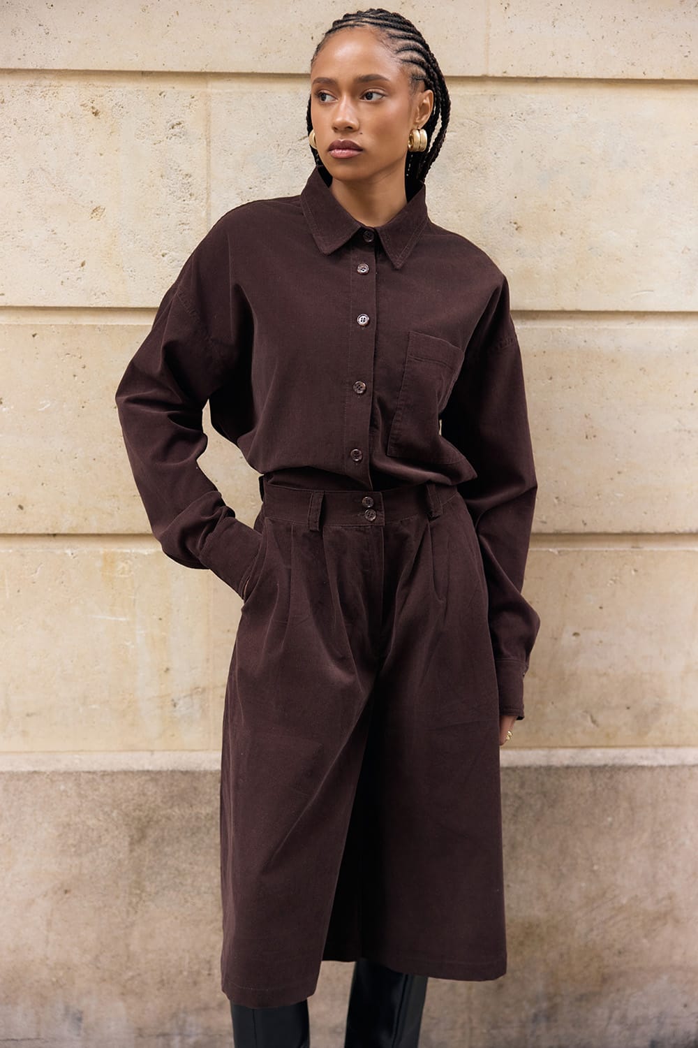Spodnie bermudy ze sztruksu 100% bawełna w pięknym odcieniu ciemnej czekolady