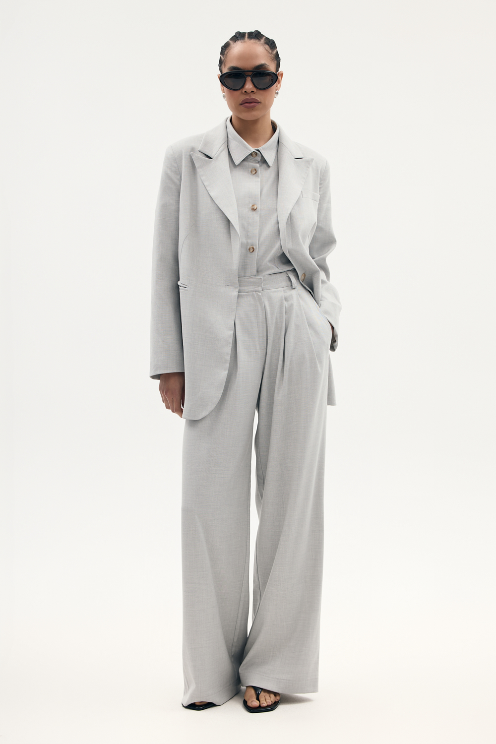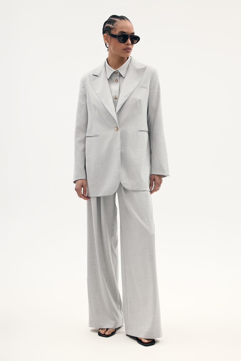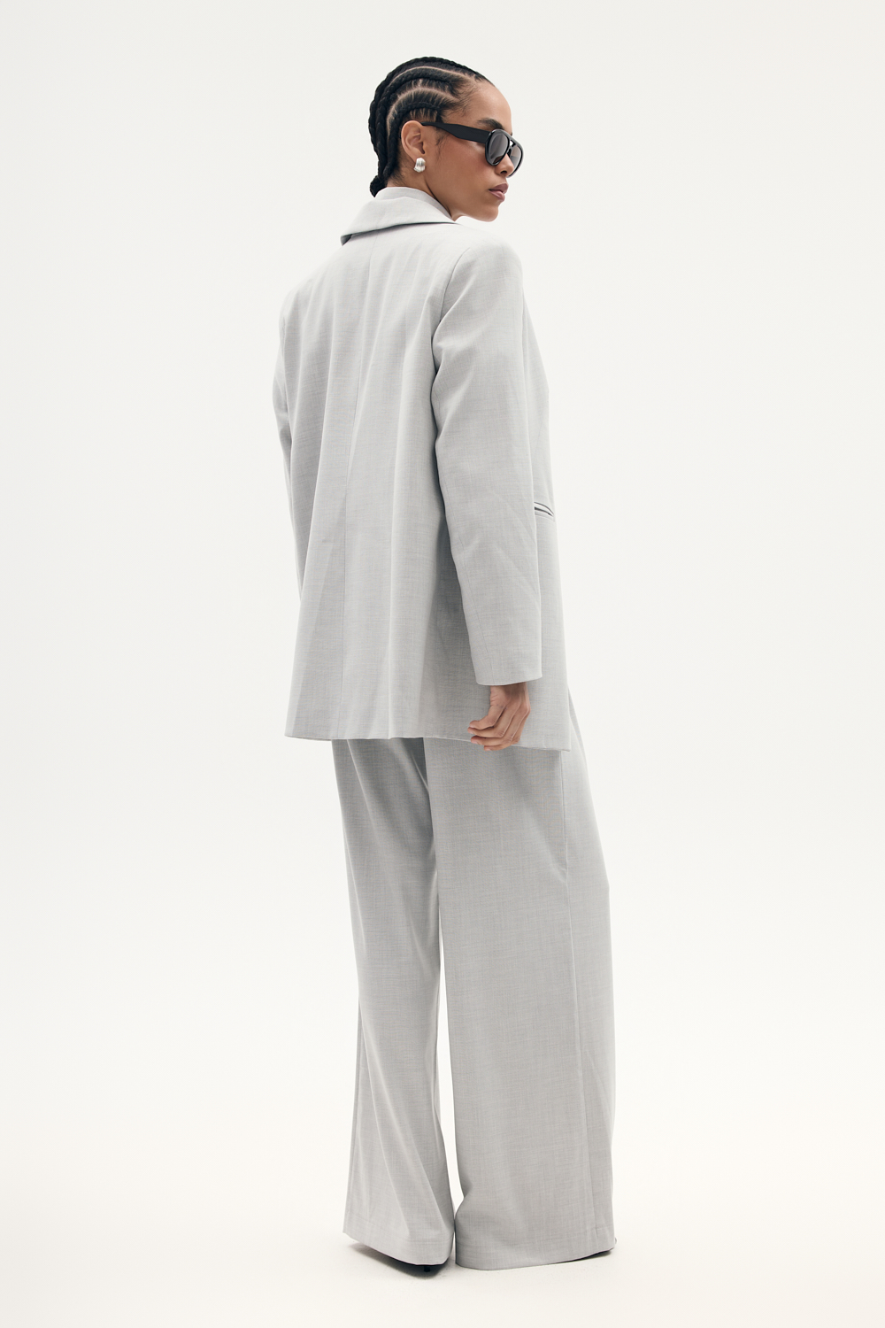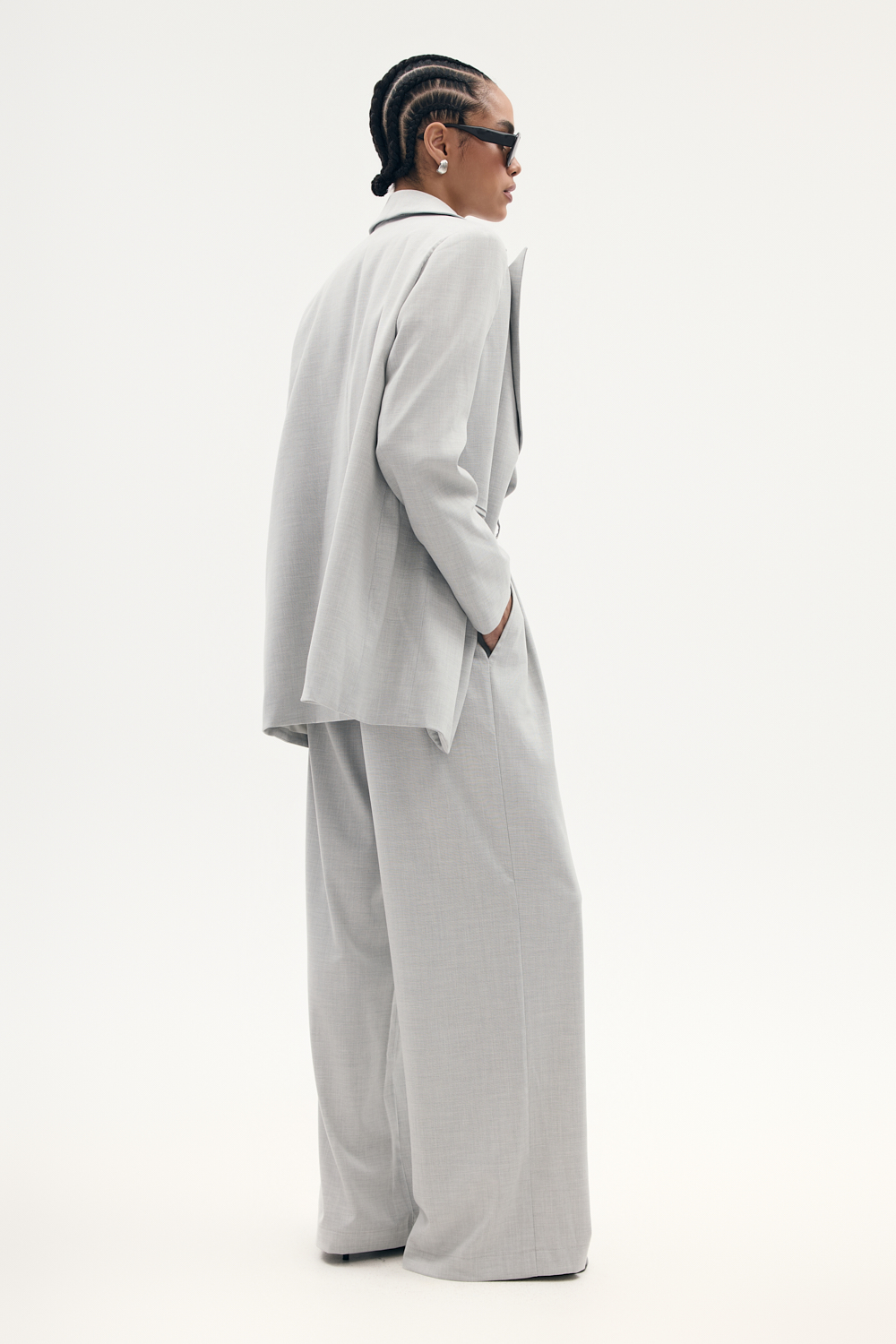 Długa marynarka o oversizowym kroju z ozdobnymi kieszeniami zapinana na guzik, wykonczona elegancka podszewka