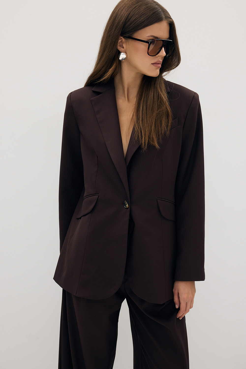 Marynarka o wyrafinowanym, minimalistycznym kroju, wykonana z miękkiej, wysokogatunkowej tkaniny w subtelnym odcieniu ecru. Klasyczna forma z nowoczesnym akcentem oversize nadaje sylwetce lekkości i nonszalanckiej elegancji.
