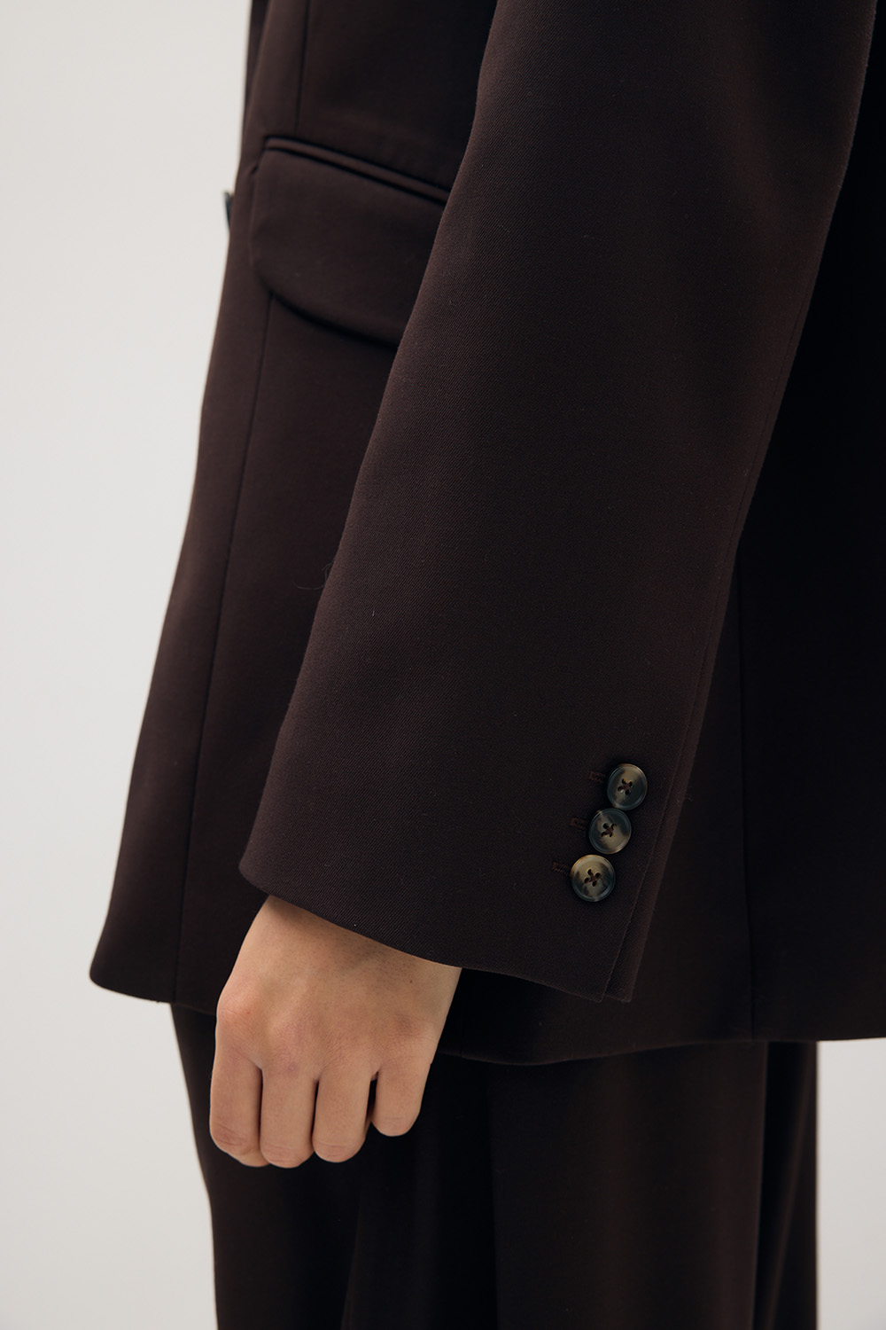 Model zapinany na jeden guzik, z precyzyjnie wykończonymi klapami i kieszeniami z patkami, doskonale wpisuje się w estetykę współczesnego minimalizmu.