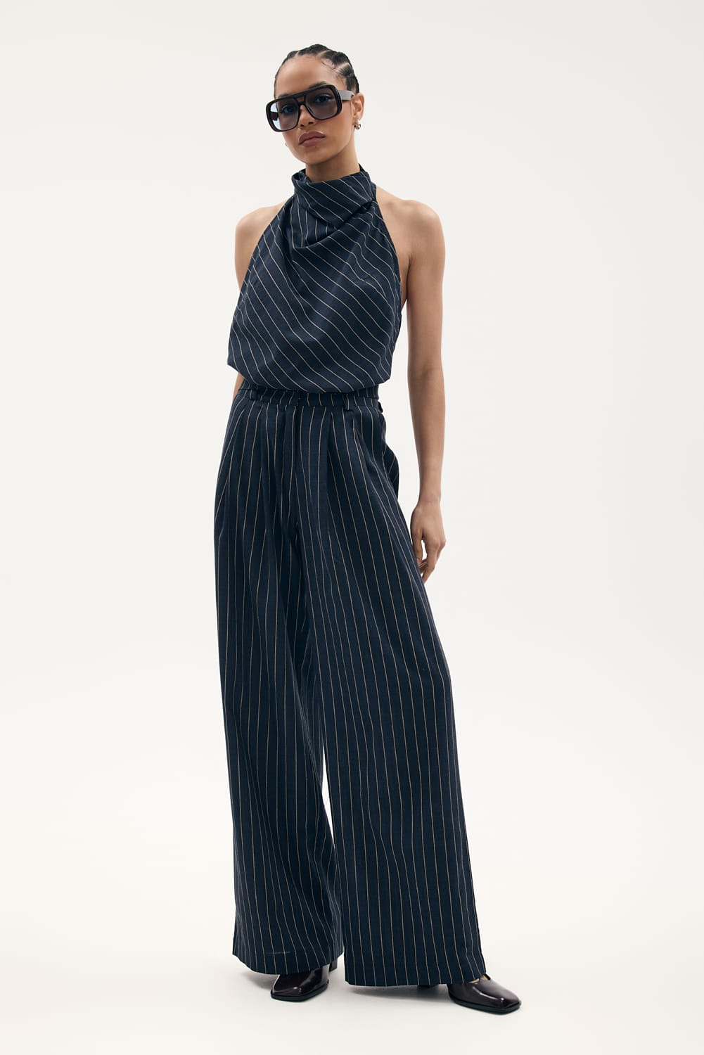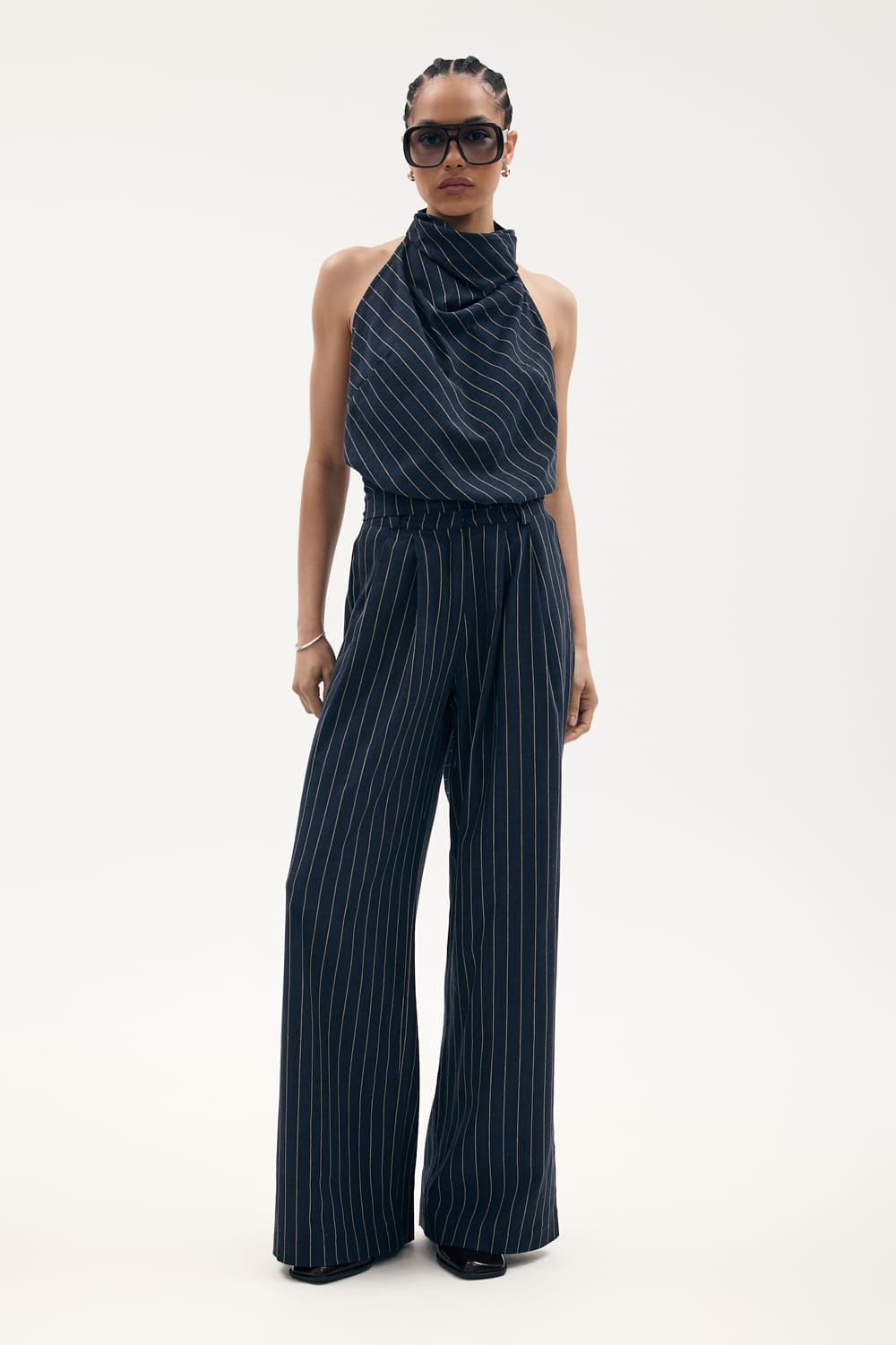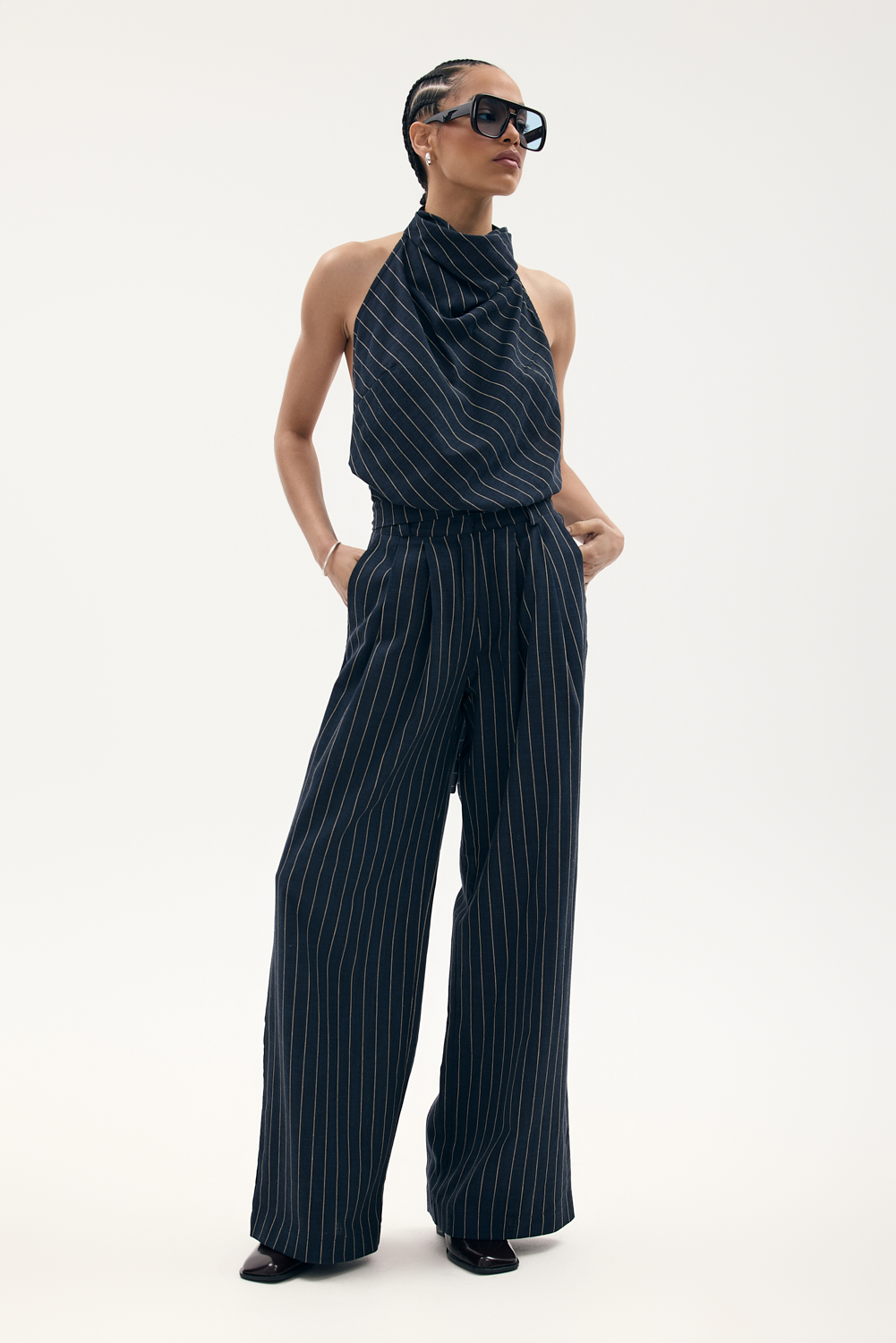 Długie spodnie o garniturowym kroju z wysokim stanem, zapinane na haftkę. Esencja elegancji i wygody.
