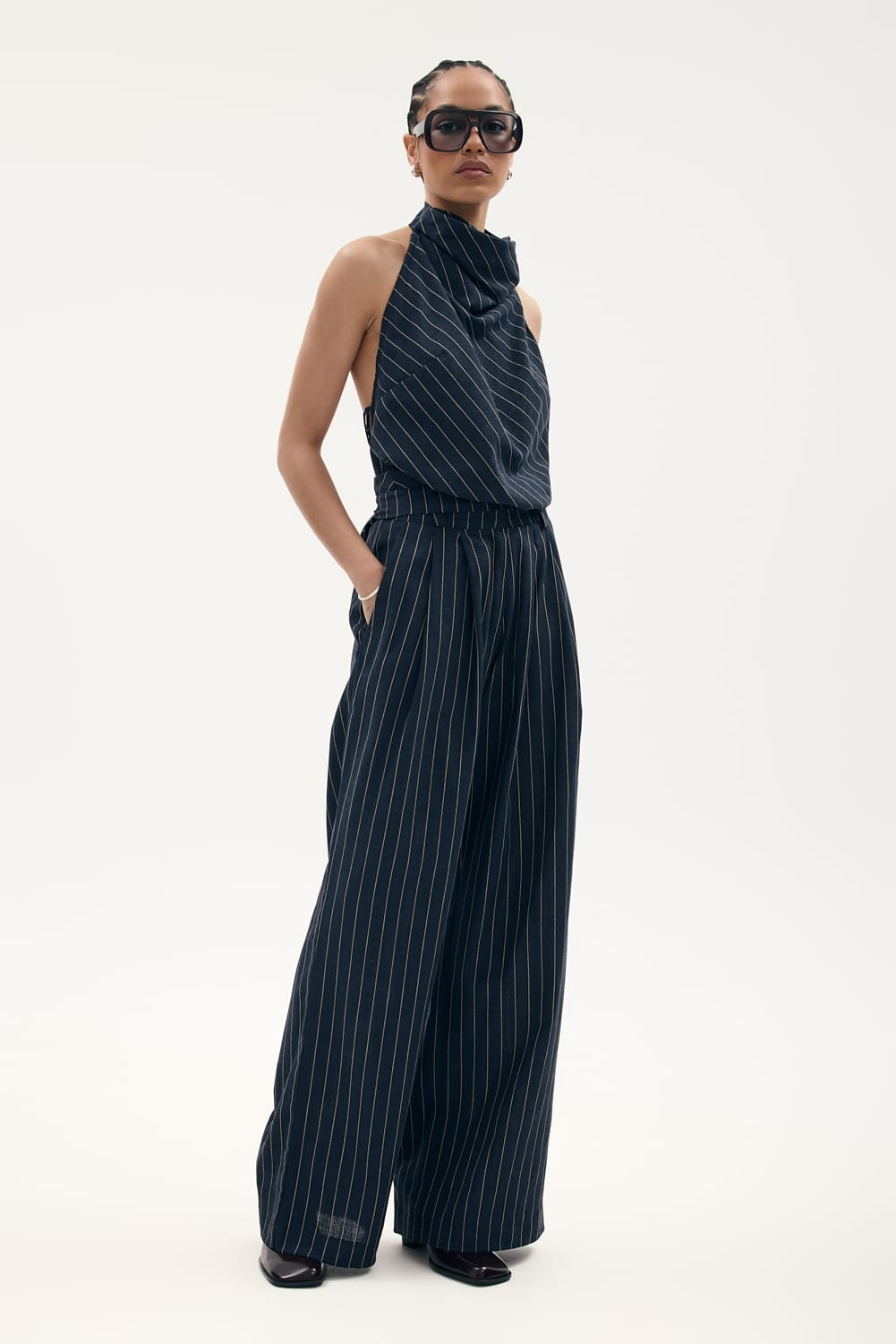 - Kolor: granatowy w delikatny kreowy prążek