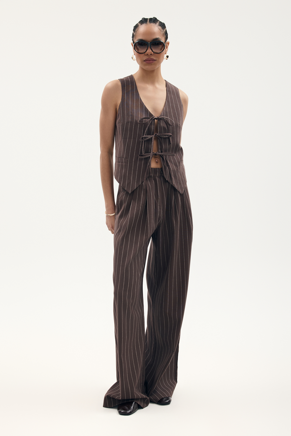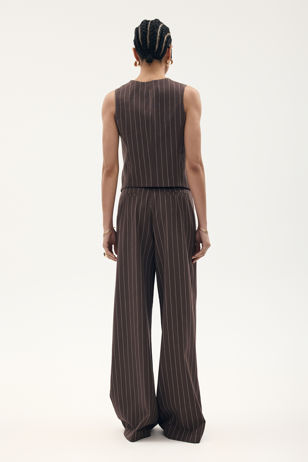 Długie spodnie o garniturowym kroju z wysokim stanem, zapinane na haftkę. Esencja elegancji i wygody.
